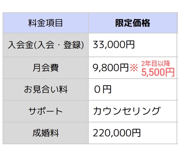 ※成婚料は成婚された方のみのお支払い金額です
